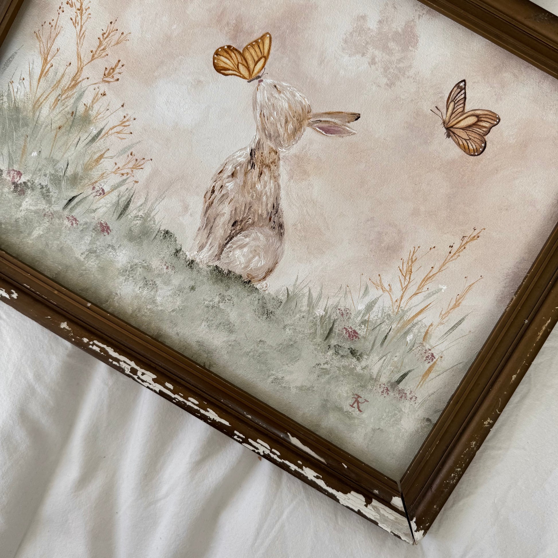 **Given the nature of the antique frame, imperfections are present and are considered normal. We should not look for perfection, but rather view it as a unique piece. Also, please note that brushstrokes, irregularities in the canvas, or any other elements are simply evidence that this artwork is entirely handmade by me. Furthermore, please understand that while I do the best framing myself, I am not a professional framer. I work with very old frames and strive to offer the best possible finished product.