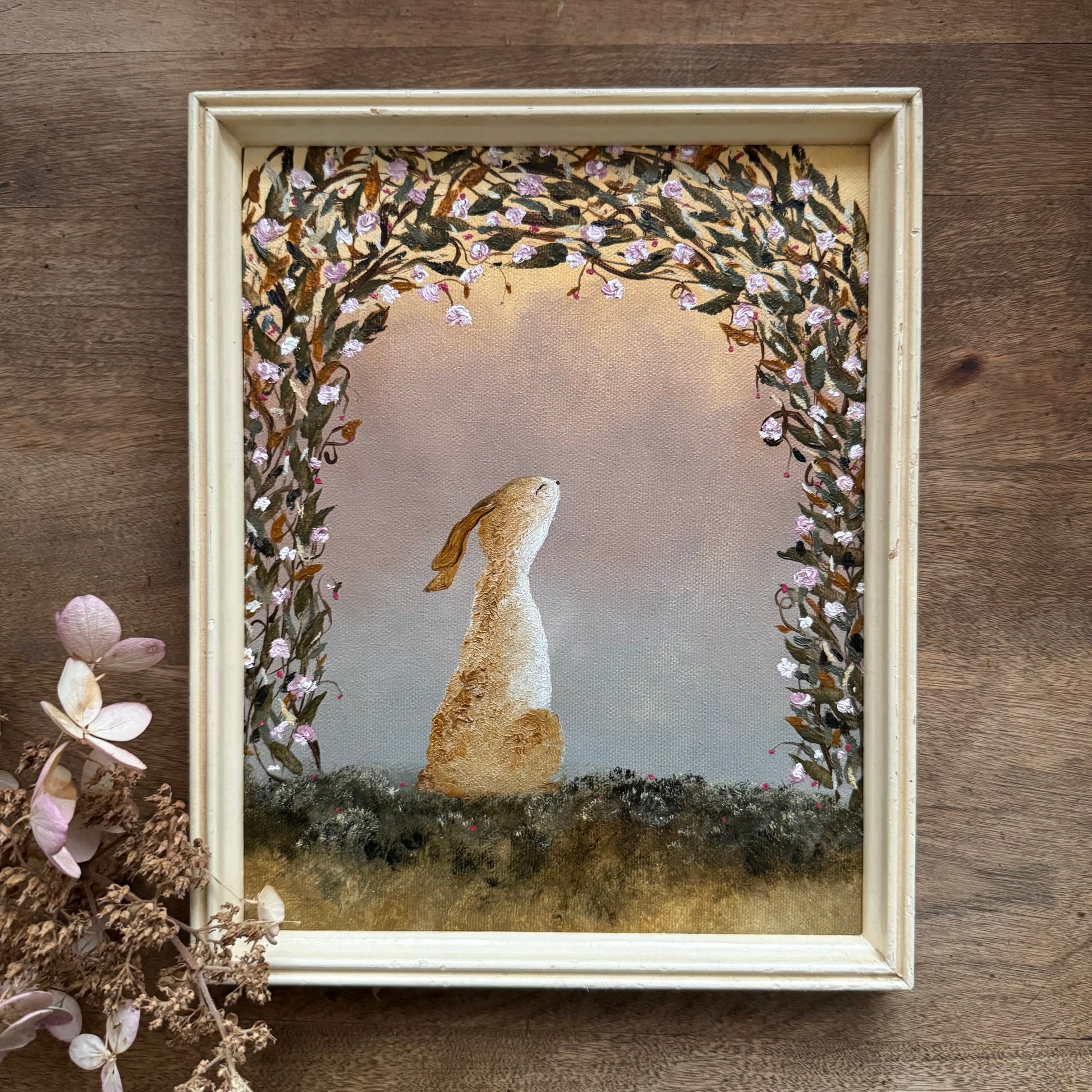 Oil painting on cotton canvas, framed in a vintage cream-colored wooden frame