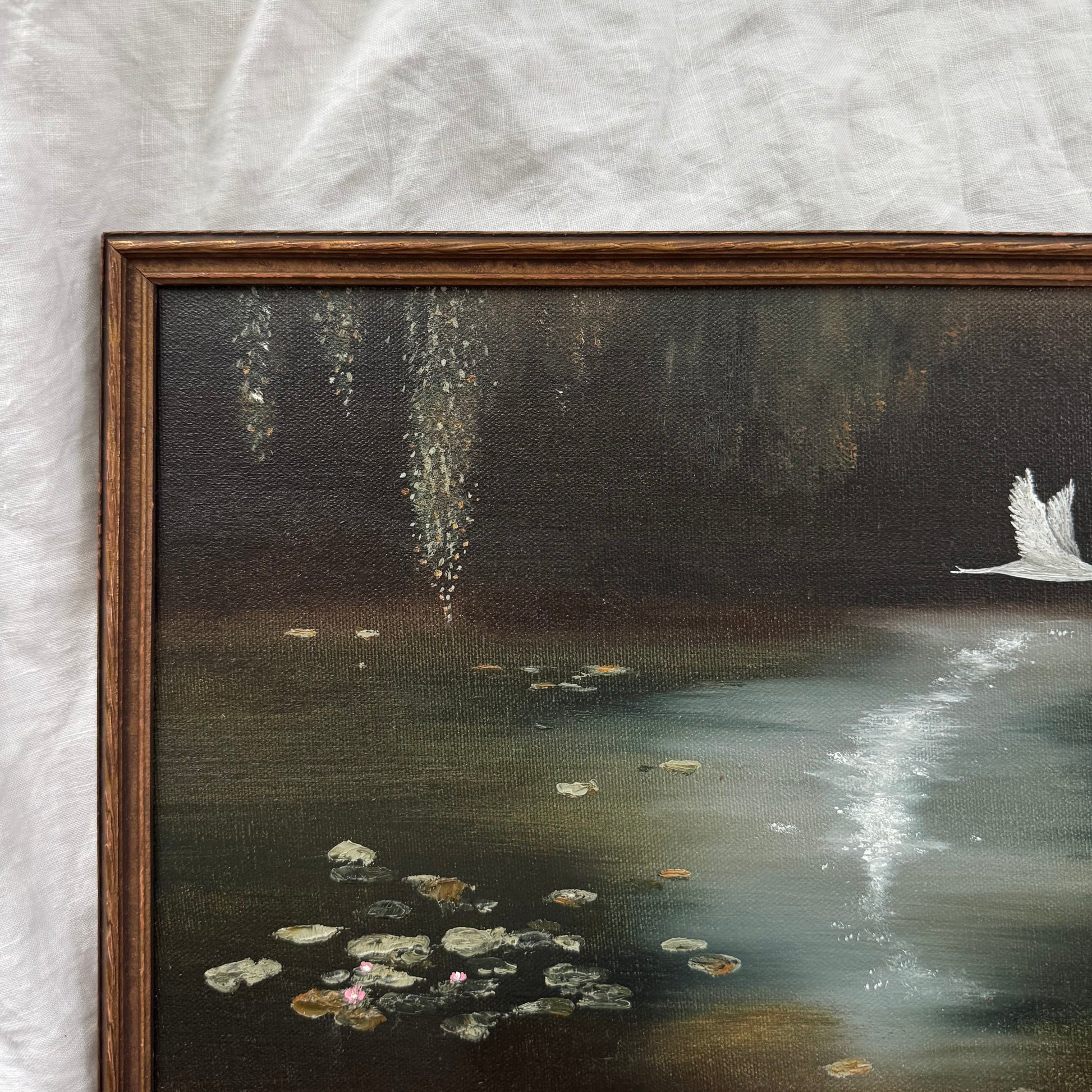 Peinture à l'huile réalisée sur une toile de coton et encadrée dans un cadre ancien en bois. Ce cadre est sans vitre