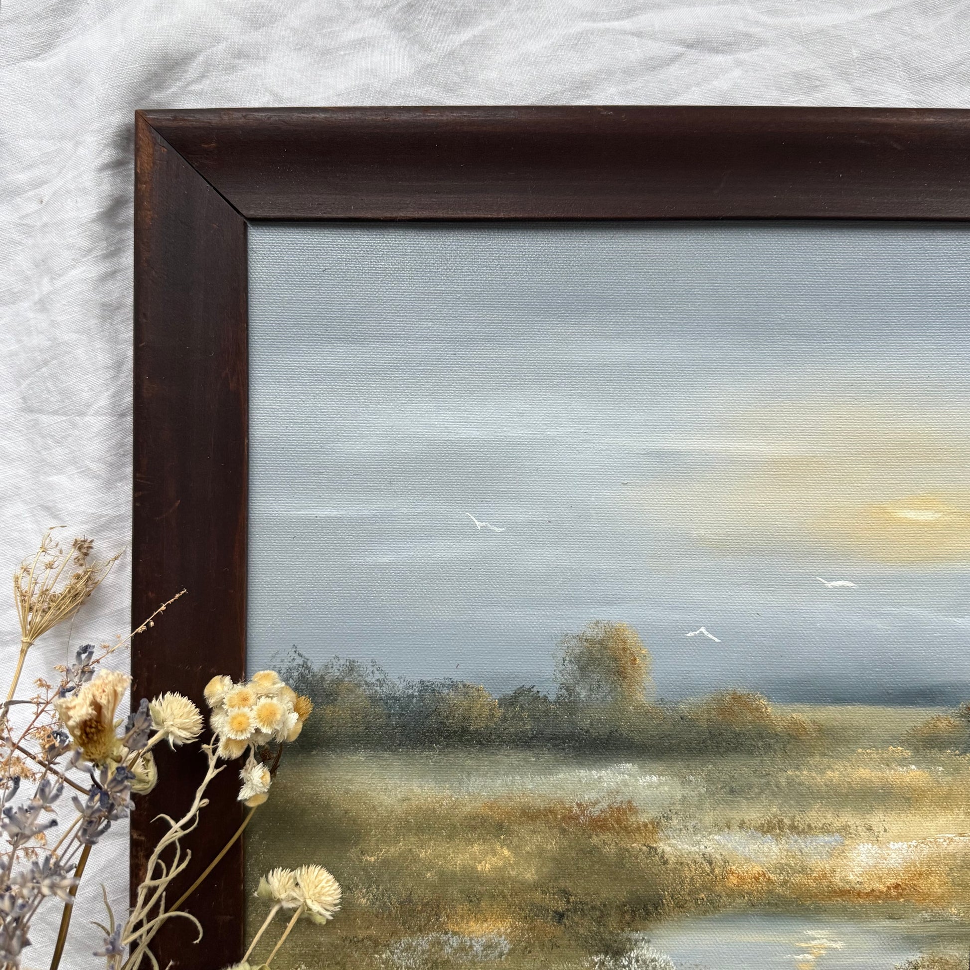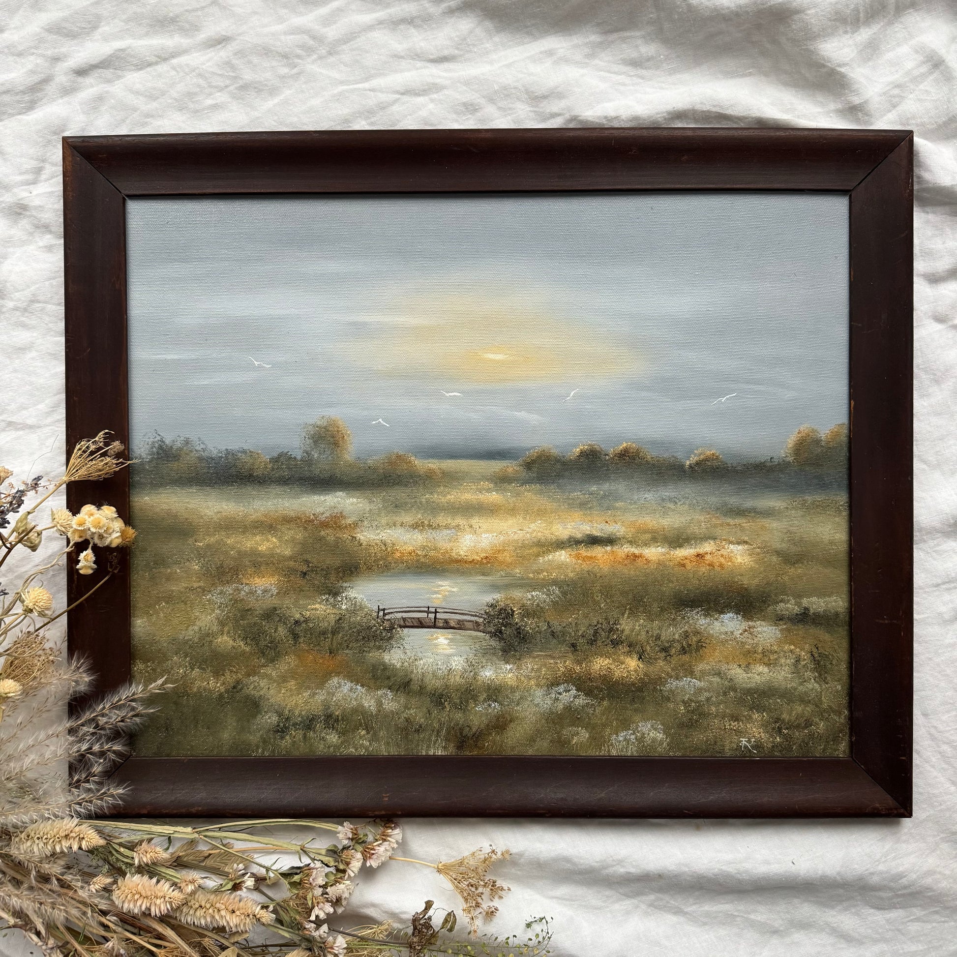 ** Compte tenu de la nature de l'ancien cadre, des imperfections sont présentes sur le cadre et sont considérées comme normales. Nous ne devons pas y chercher la perfection, mais voir l'ensemble comme un objet unique. Aussi, sachez que les traits ou poils de pinceaux, les irrégularités dans la toile ou tout autre éléments ne sont que la preuve que cette œuvre est fait entièrement à la main par moi-même. Aussi, sachez que j’effectue l’encadrement au mieux de moi-même, mais que je ne suis pas encadreuse de profession. Je travaille avec des cadres très anciens et je fais mon possible pour offrir le meilleure produit fini